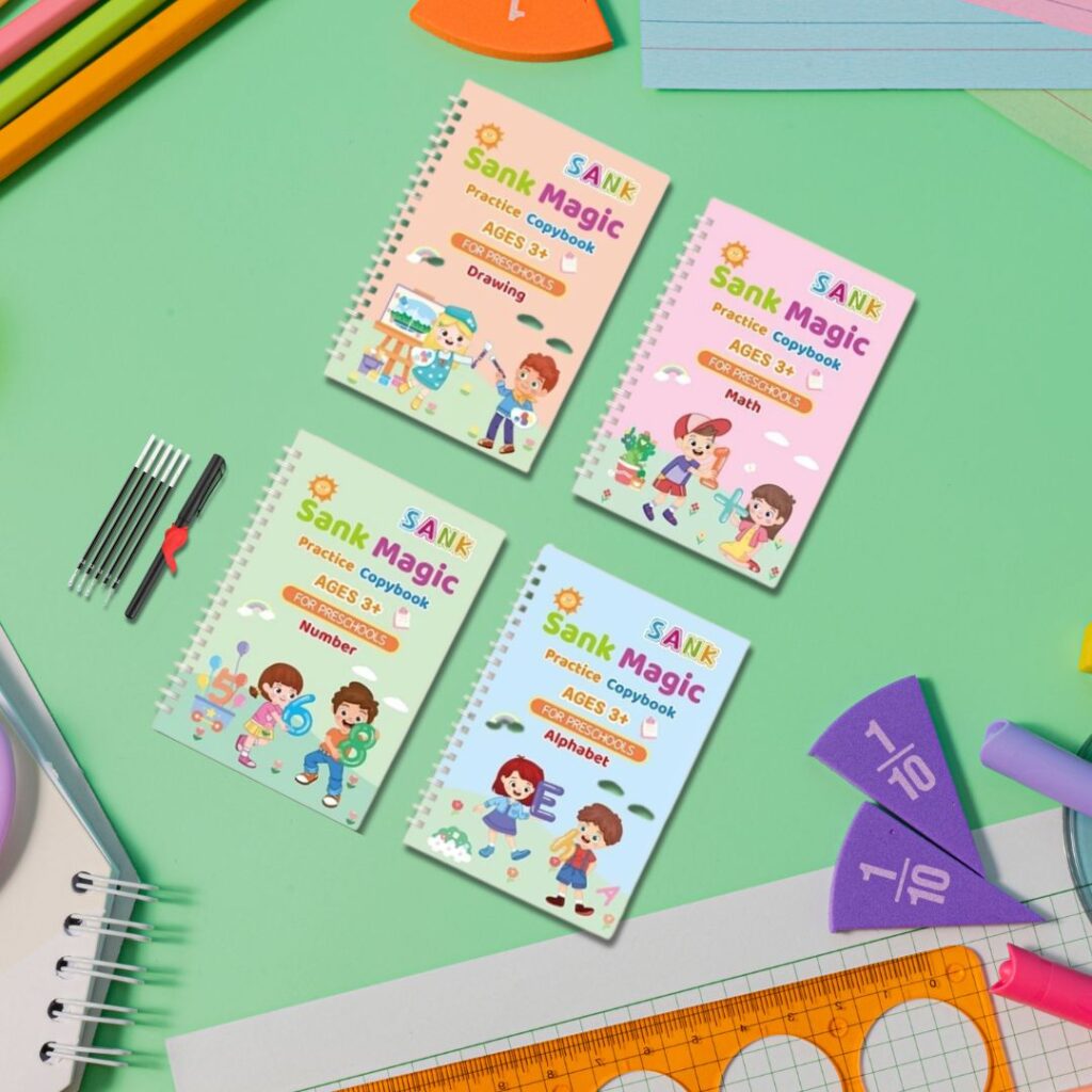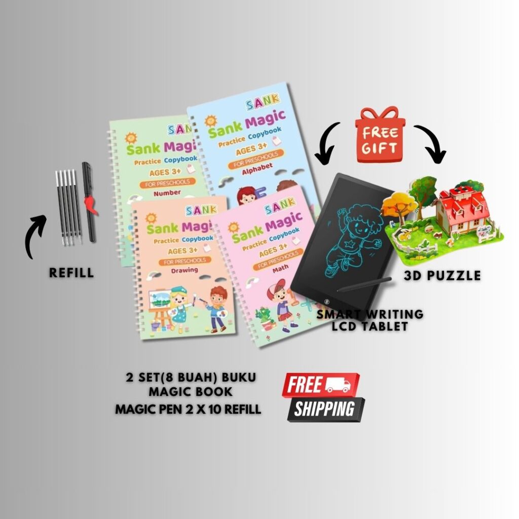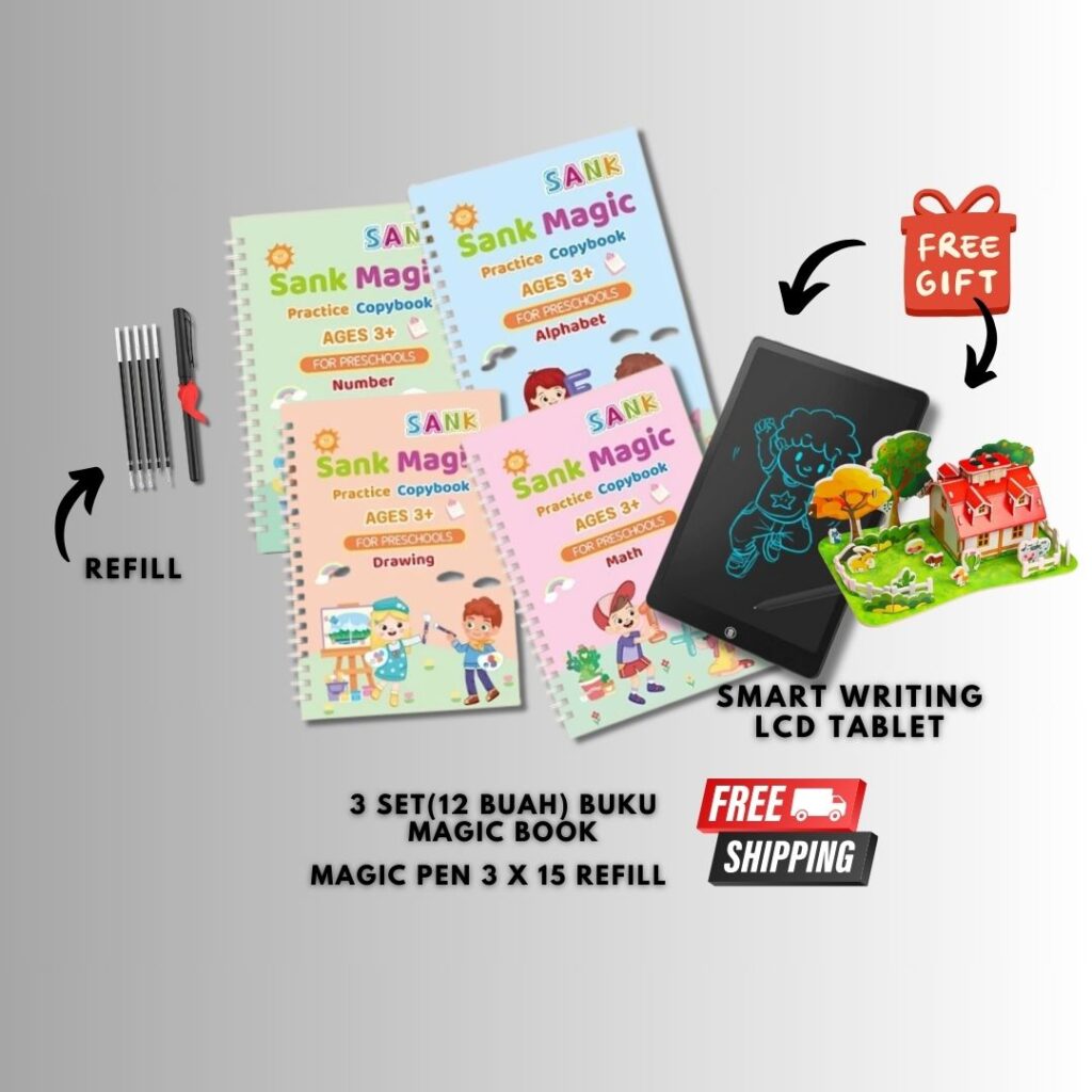 Magic Book direka untuk kanak-kanak berumur 3 hingga 7 tahun yang sedang belajar menulis dan mengenal huruf, nombor, serta bentuk